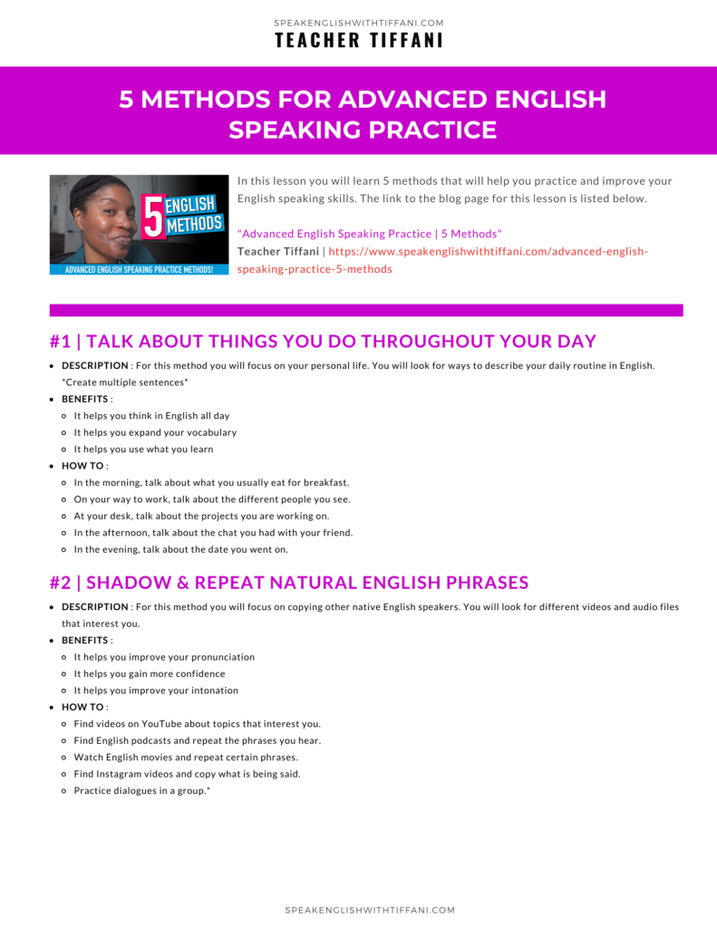 By watching this video lesson, you will learn 5 methods that will help you practice and improve your English speaking skills.