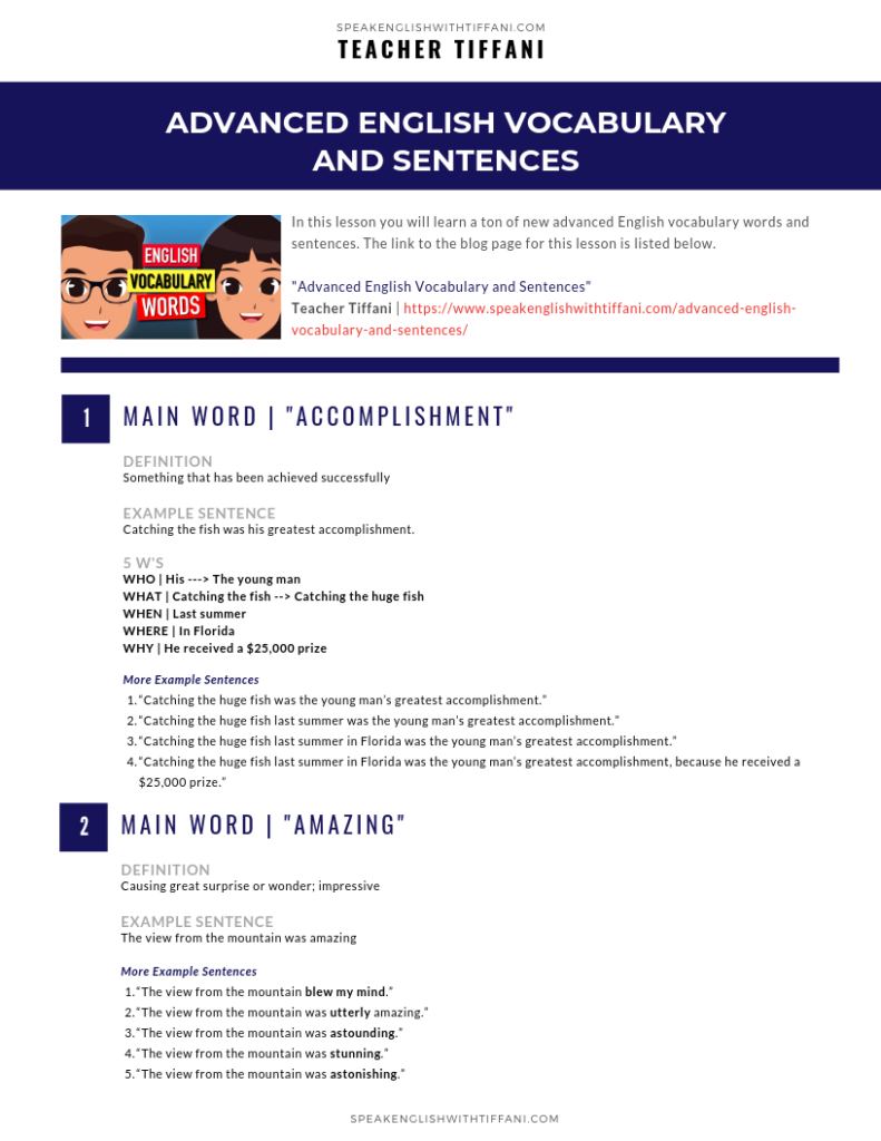 Advanced English Vocabulary And Sentences Posted on by By watching this video lesson, you will learn a ton of new advanced English vocabulary words and sentences. Academy students can get the PDF Lesson: