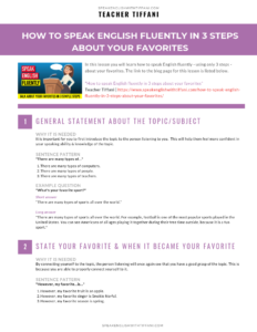 How To Speak English Fluently In 3 Steps About Your Favorites Posted on by By watching this video lesson, you will learn how to speak English fluently – using only 3 steps – about your favorites. Academy students can get the PDF Lesson: